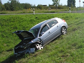 Böschung hinunter. Unglücklicherweise erfasste er dabei den Fußgänger und verletzte ihn