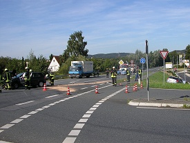 Nach einem Verkehrsunfall auf der Versmolder Str. wurde die Feuerwehr Dissen am