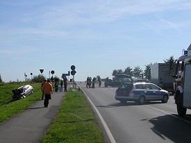 mit der Polizei die Unfallstelle. Während der Rettungs- und Bergungsarbeiten war