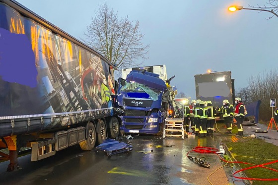 07:15 Uhr in die Dieter-Fuchs-Straße alarmiert. Dort waren zwei LKW miteinander kollidiert, ein Fahrer