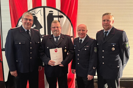 Axel Börchers wurde für 40-jährige Dienste im Feuerlöschwesen geehrt. Von links: 1. Stv.