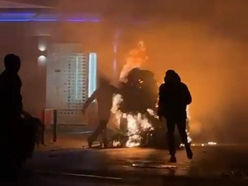 der am Straßenrand aufgestellten Tannenbäume auf die Straße und nutzten große Feuerwerkskörper,