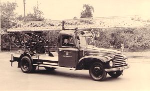 ihre erste Drehleiter. Eine DL 20 wurde auf das Opel Blitz-Fahrgestell des alten